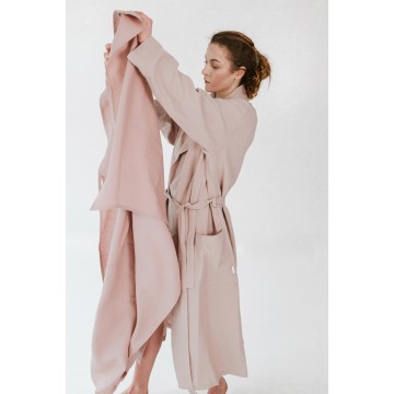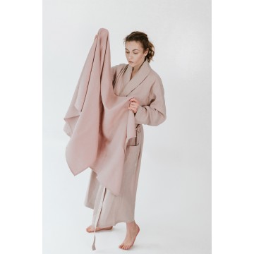 Ein Leinenhandtuch in einem zarten Rosaton, das durch seine Weichheit und hohe Saugfähigkeit überzeugt. Es eignet sich perfekt für das Spa oder den täglichen Gebrauch und sorgt für ein luxuriöses Gefühl auf der Haut.
